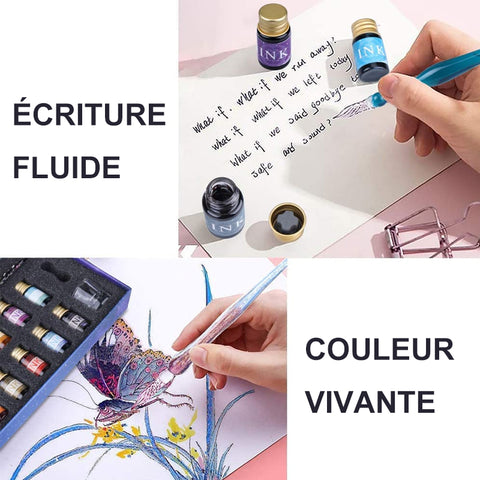 Ornement délicat de poudre d'or: L'encre incluse dans notre parure de stylos en verre contient de la poudre d'or décorée, pour rendre votre écriture ou votre peinture plus impressionnante.